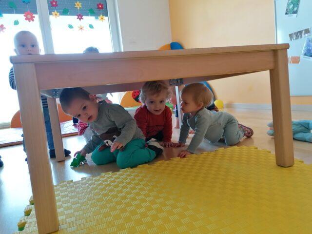Jedna ruka gore, jedna noga dole. Provlačimo se, penjemo i pužemo, jedan, dva, tri jer mali PUŽIĆI smo mi.