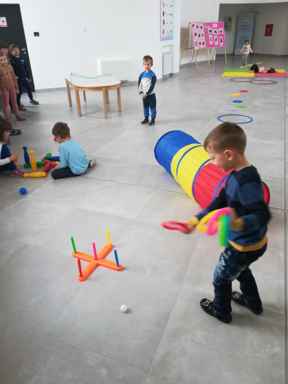 U našoj multifunkcionalnoj dvorani izvodimo različite poligone spretnosti i vježbamo na vanjskom prostoru.